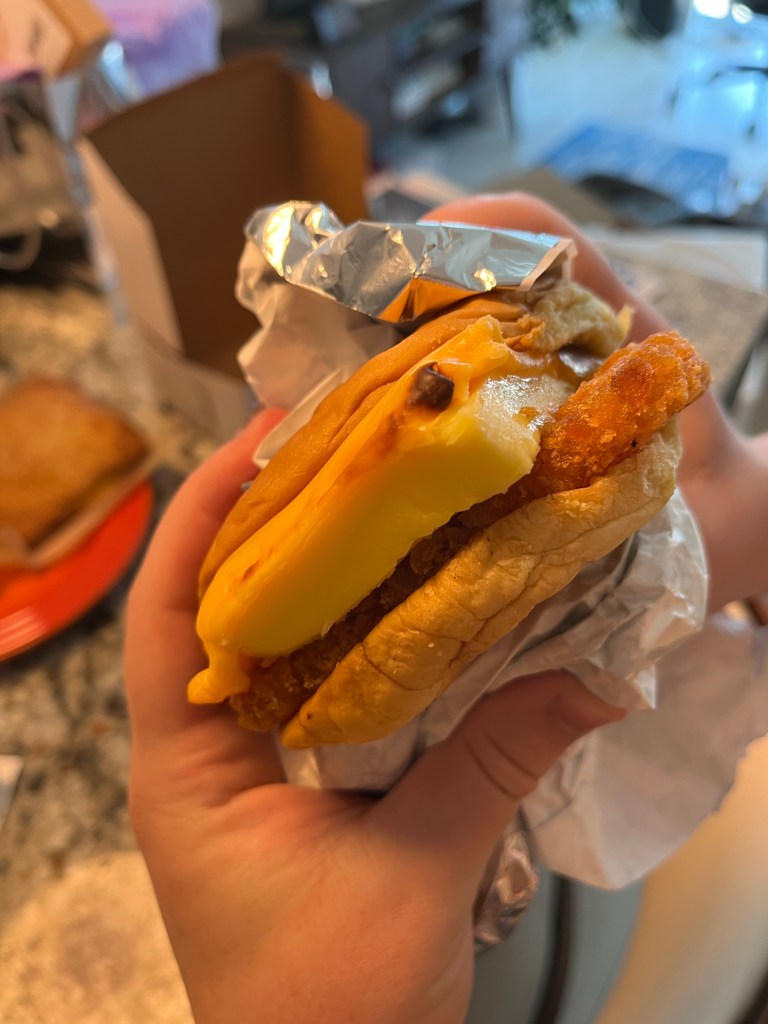 I also got the hash brown egg and cheese sandwich, another go to of mine. If you’re not super hungry but wanting to try this place, this is the perfect choice. I ordered the food and it was an hour wait, but my hash brown was still crispy,egg was still fluffy and the cheese did not harden. Would drizzle some ketchup if you’re into that 😉
