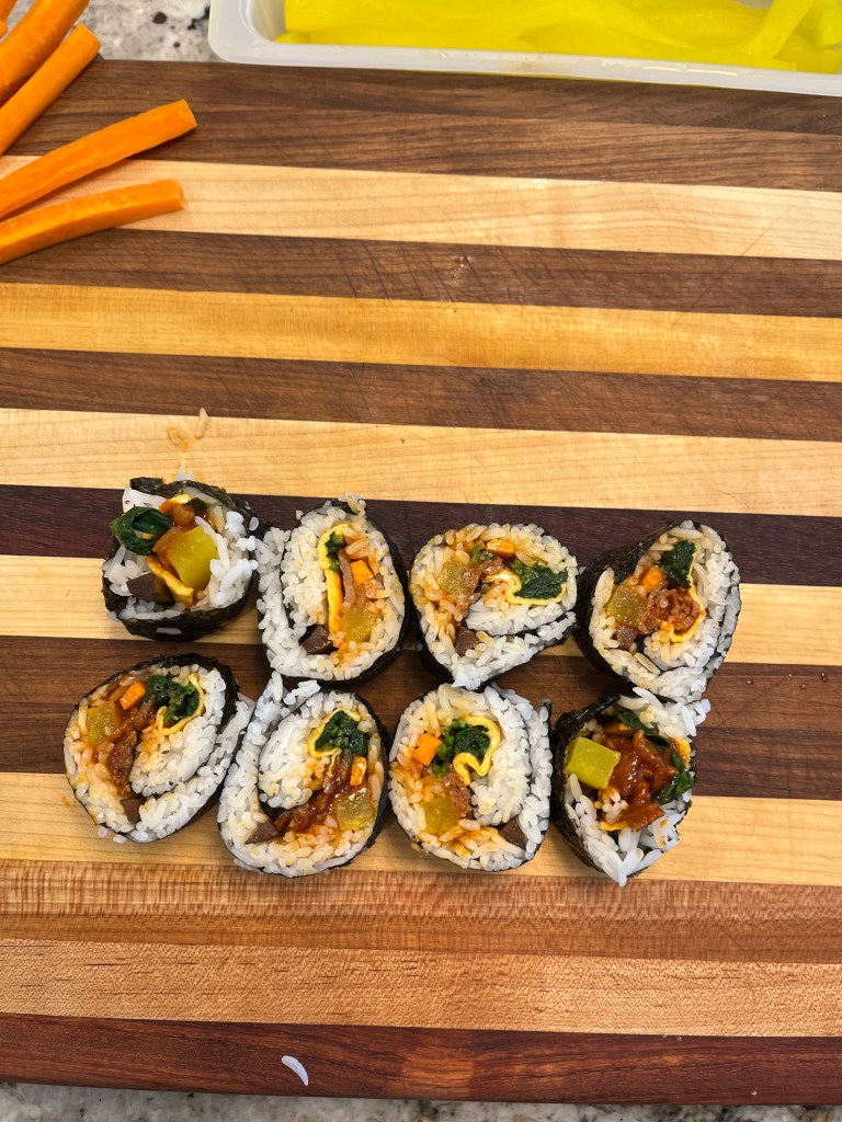 Hi guys, welcome to my first recipe I am sharing on my blog! This is a very simple recipe that is easy to make and packed with flavor and texture. Kimbap is a Korean dish that reminds me of a Japanese sushi roll or a Mexican burrito. Basically made with rice, veggies, a protein and wrapped in a thin piece of something to hold it all together.